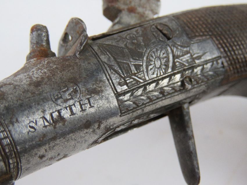 An antique British .50 Calibre Percussion Derringer by Smith of London.