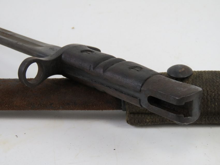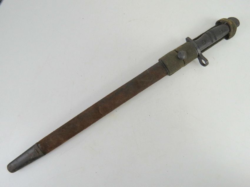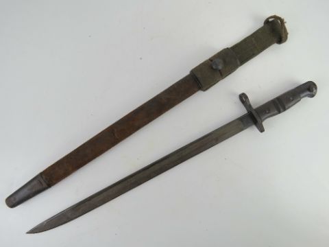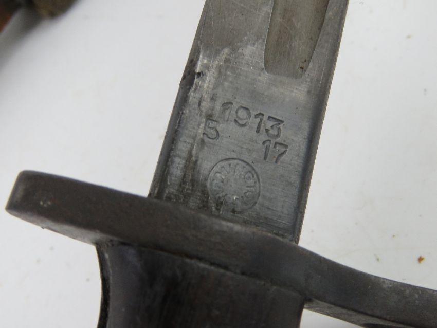 A P14/P17 bayonet with scabbard and frog, Remington made and dated 1917.