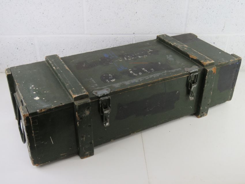 A British 7.62 GPMG wooden transit chest, with inserts and screws, original plate to lid.