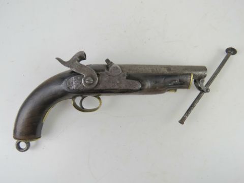 An antique British Military .58 Calibre percussion pistol with 1840 dated Tower lock and British military stamps.