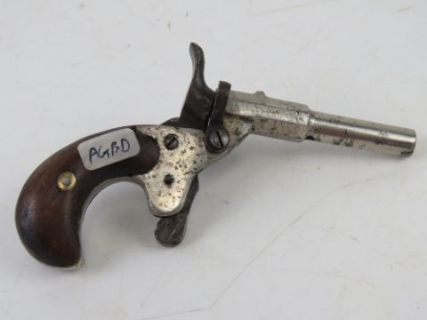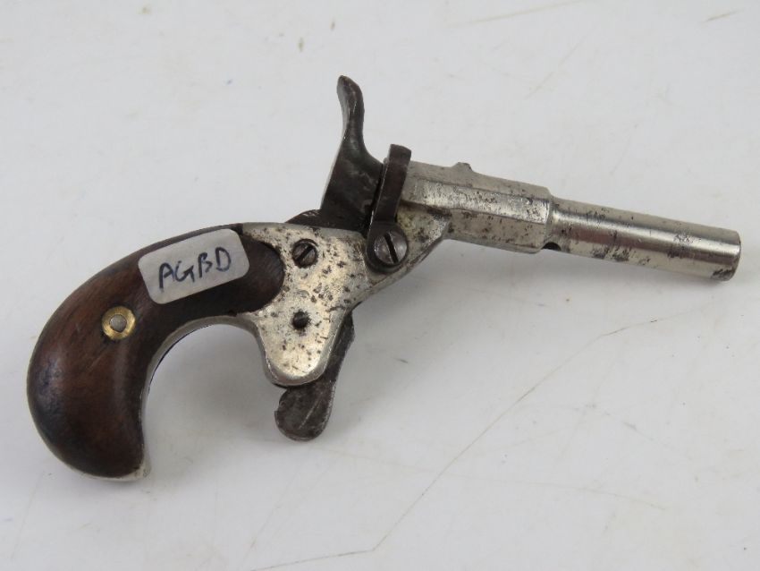 An antique nickel plated German 6mm Blank Calibre Derringer.