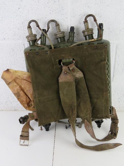 A deactivated LPO-50 Flame Thrower having connector hose and tanks. With certificate.