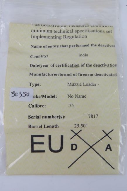 A deactivated Brown Bess .75 Calibre Cavalry Carbine with Tower lock and crown markings, having polished finish. With certificate.