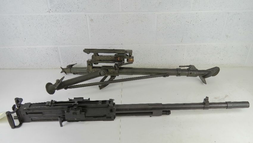 A deactivated Breda M37 7.92mm Heavy Machine Gun and Tripod. Latest EU spec, with moving bolt (under spring pressure), moving trigger and safety, bolt release, and opening top cover. With certificate.