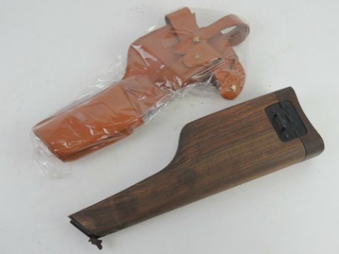 A reproduction Mauser C96 broom handle shoulder stock and holster.