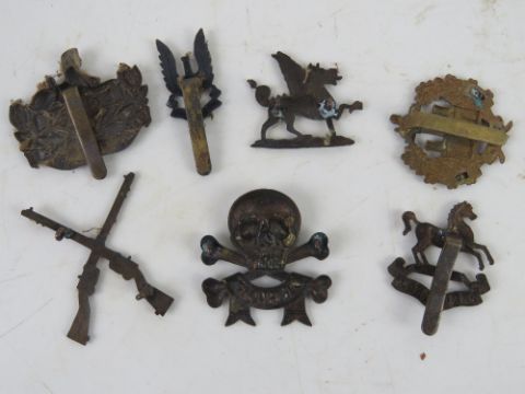 Thirty-seven British cap badges, inc SAS,17th Lancers, The Essex regiment, the Gloucestershire regiment, the Kings regiment, etc.