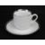 A set of four contemporary silver rimmed coffee cans with saucers.
