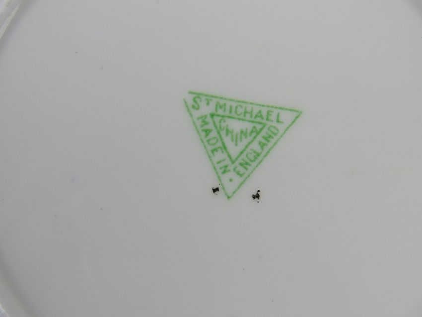 A vintage set of St Michael green and gilded sandwich serving plates and side plates.