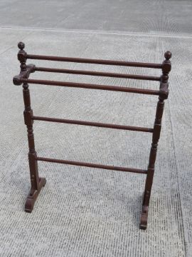 A turned mahogany Victorian free-standing towel rail measuring 70cm wide.