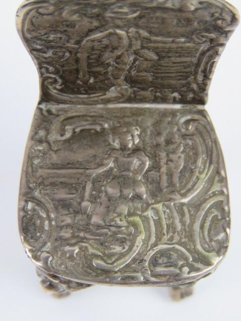 A Victorian silver miniature chair hallmarked for Birmingham 1897 weighing 26.2g, 6cm at back.