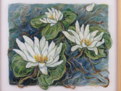 A framed felt work titled Water Nymph by Deborah Poole, framed and mounted, 49 x 56cm.