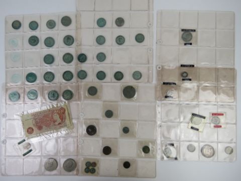 A 1573 Elizabeth I silver coin, together with a 1711 Anne silver coin, an 1817 George III silver coin and a quantity of other British coins including various Victorian coins.