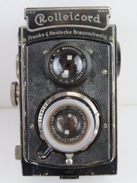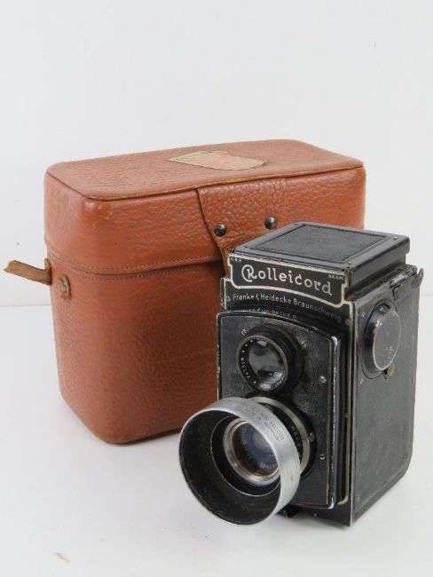 A Rolleicord by Franke & Heidecke Braunschweig in leather case having United States customs service label upon.