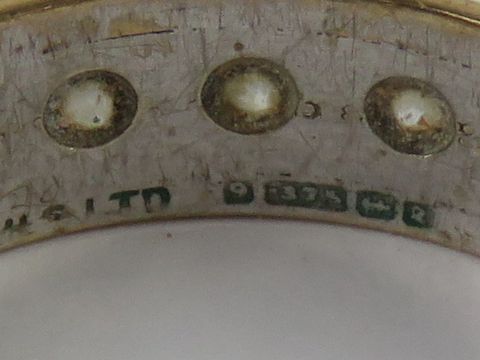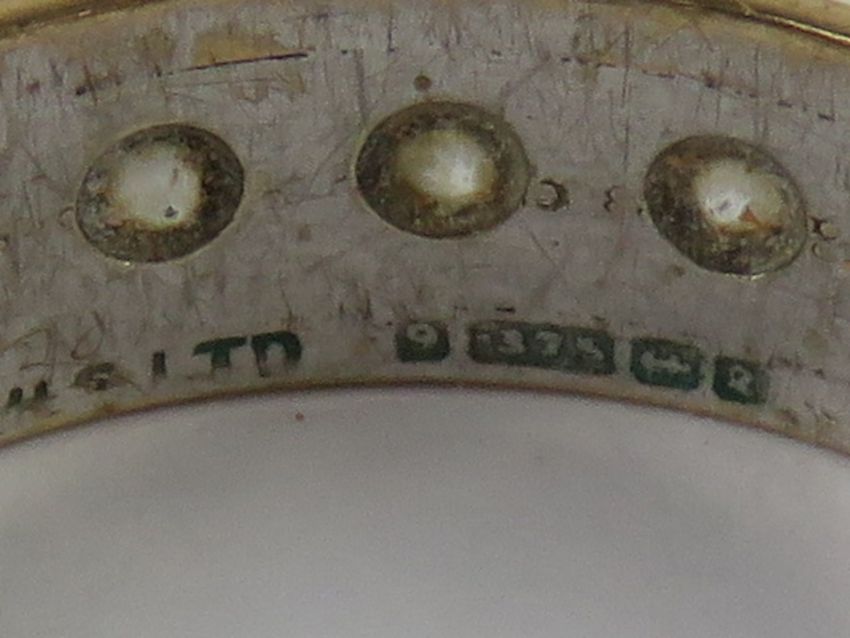 A 9ct gold eternity ring hallmarked Birmingham 1965 set with white stones (possible spinel) size O-P, 3.1g.