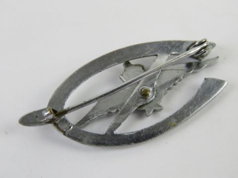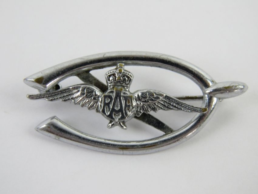 A chrome RAF 'Wings' and wishbone sweetheart brooch.