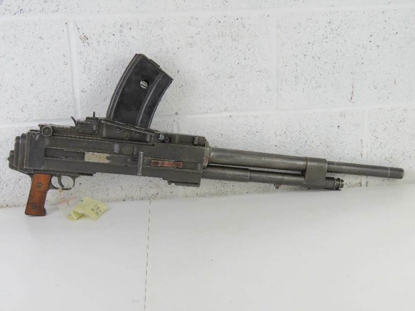 A deactivated Breda M38 7.92mm Tank Heavy Machine Gun with wartime Italian Fascist stamps and dovetail mount. Latest EU Spec, with moving bolt (under spring pressure), moving trigger and safety, bolt release, opening top cover, and removable magazine. With certificate.