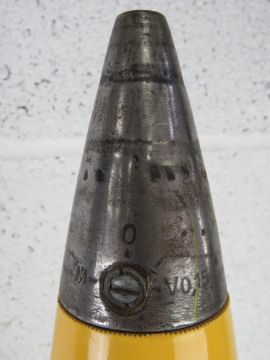 An inert WWII German 8.8cm Flak shell, the case is dated 1942, the head has been repainted but retaining original markings and stamps, and the head is dated 1944, AZ23 fuze dated 1943.