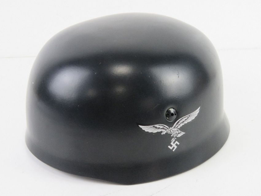 A reproduction WWII German single decal M38 Fallschirmjager helmet with liner and chin strap.