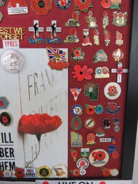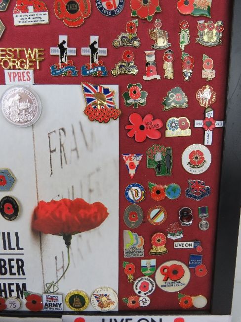 A collection of remembrance pins, approx 130 on board. Some rare pins noted.