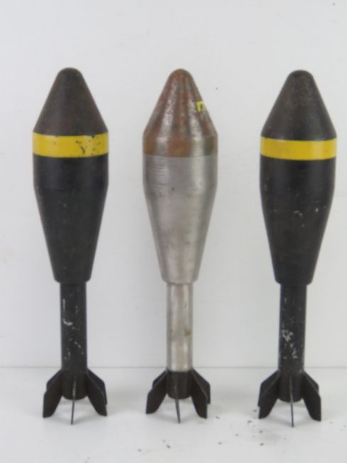 Three inert NR5 Energa rifle grenades, Dutch made, used with the SLR (Self-loading rifles).