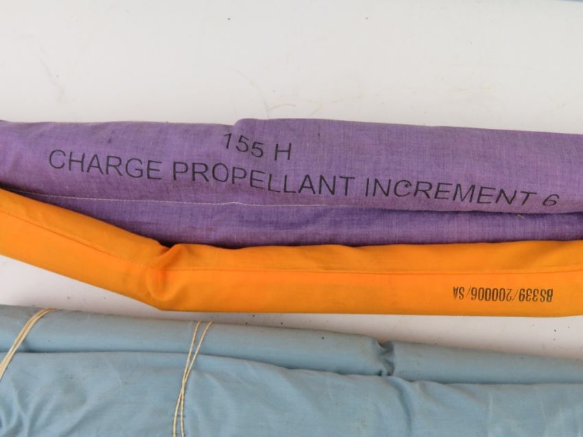 A quantity of assorted increments, 155 H Charge Propellant Increment 3 cover + 155 H Charge Propellant bag cover, has the number BS339/200009/SA + 155 H Charge Propellant Increment 4 + 155 H Charge Propellant Increment 6 cover + 155mmH Charges Propelling 3-1 cover.