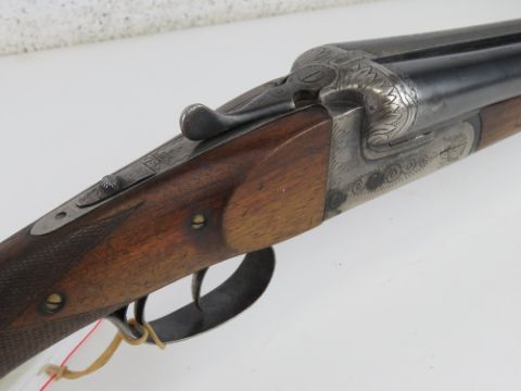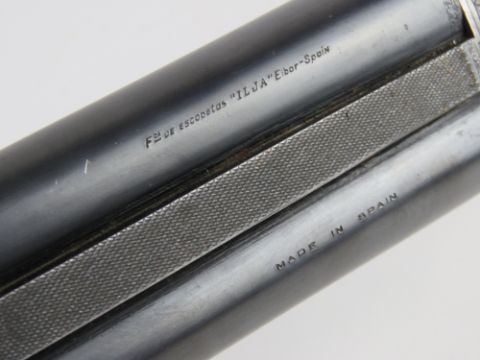 A deactivated Spanish Double Barrel 12 Gauge Boxlock Shotgun with 27" barrels and engraved action. Latest EU spec moving trigger, safety, and break open action. With certificate.