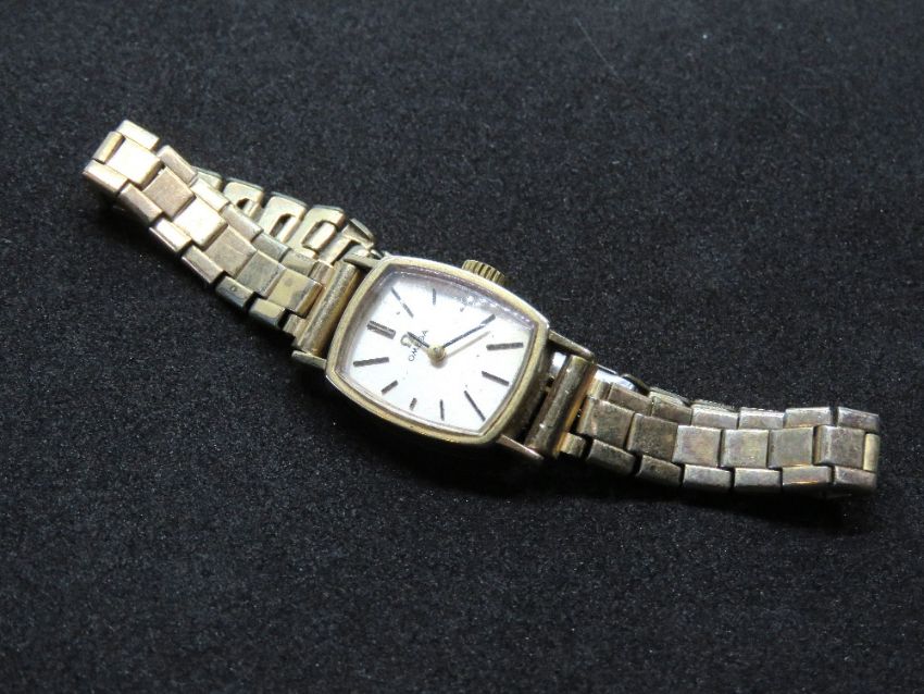 A vintage 9ct gold Omega ladies cocktail watch on Montal gold plated strap, silvered dial, movement case and crown wheel all marked for Omega, case hallmarked for London 1970, case back weighing 1.8g.