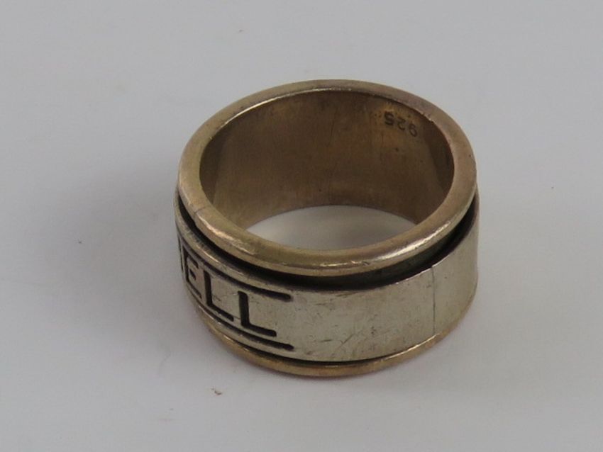 A silver ring by Paul Mitchell having slightly worn marks within, stamped 925, size R-S.