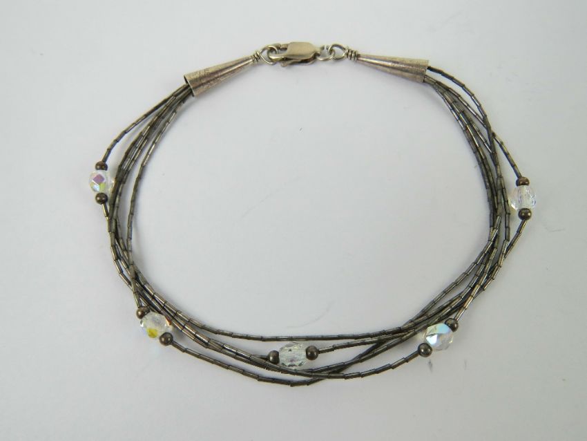 A Native American Navajo style silver bead and crystal bracelet, stamped sterling with makers mark over, 19cm in length.