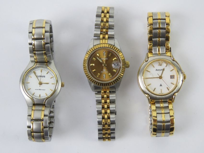 Two stainless steel ladies wristwatches in presentation boxes being Sekonda and Lorus. Also an Accurist wristwatch. Three items.