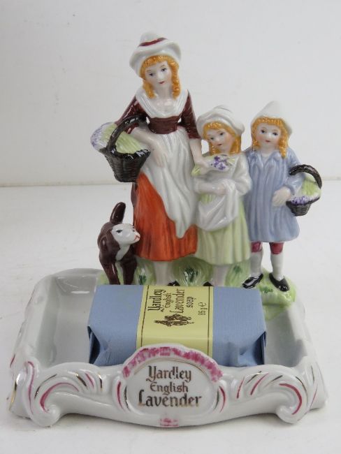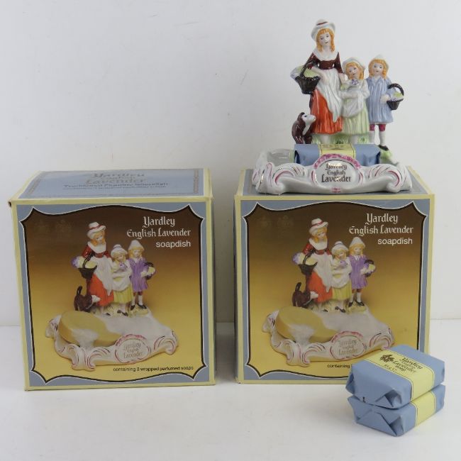 Two Yardley English Lavender traditional figurine soap dishes, each in original box, one having original soap within.