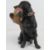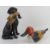 A hand made and painted wooden duck 41cm in length together with a figurine of a black Labrador with pheasant in mouth standing 30cm high. Two items.