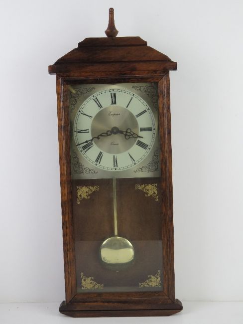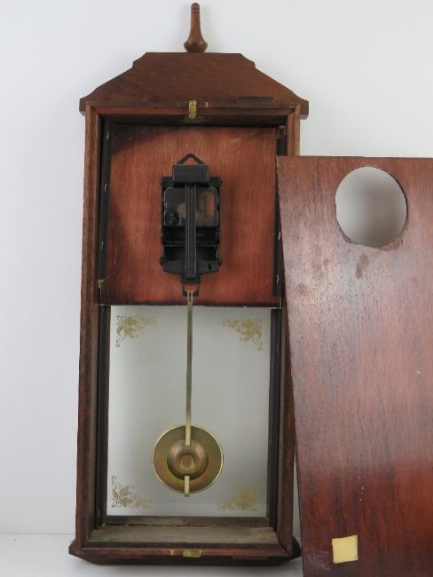 An early 20th century mantle clock having brass chapter ring. Together with a contemporary wall clock. Two items.