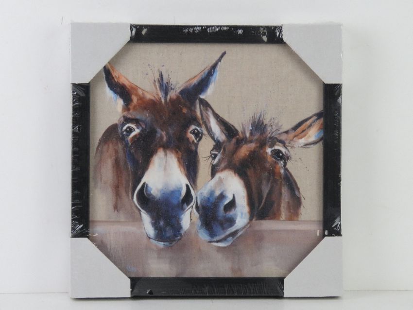 Print; Coffee and Cream by Louise Luton featuring two donkeys 33.5 x 33.5cm.