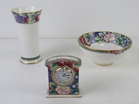 Royal Doulton Orchard Hill ceramics being vase, bowl and clock.