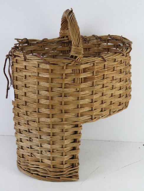 A wicker 'stairs' basket having loop handle over.