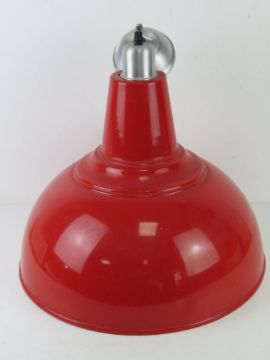 A large contemporary red painted industrial style lamp shade, 41.5cm dia.