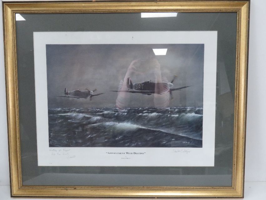 Signed Military Aviation print; Appointment with Destiny by David E Bright, signed in pencil lower right, sight size 51.5 x 34cm, framed and glazed 79 x 65cm.