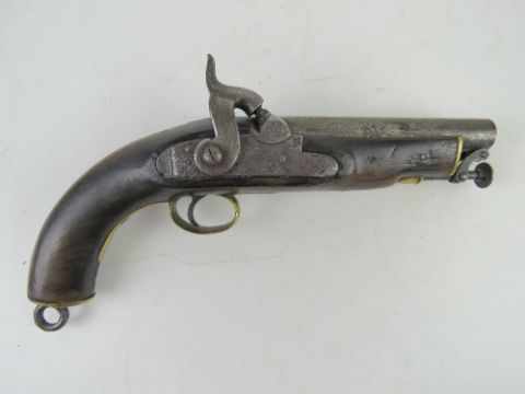 An antique British Military .58 Calibre percussion pistol with 1840 dated Tower lock and British military stamps.