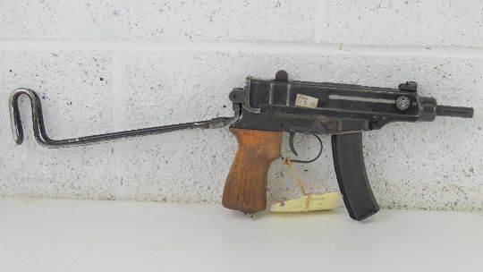 A deactivated Czech Skorpion Wz61 7.65mm Sub Machine Gun with slotted wooden grip. Latest EU Spec, with working dummy metal bolt (under spring pressure), moving safety and trigger, and removable magazine, with certificate.