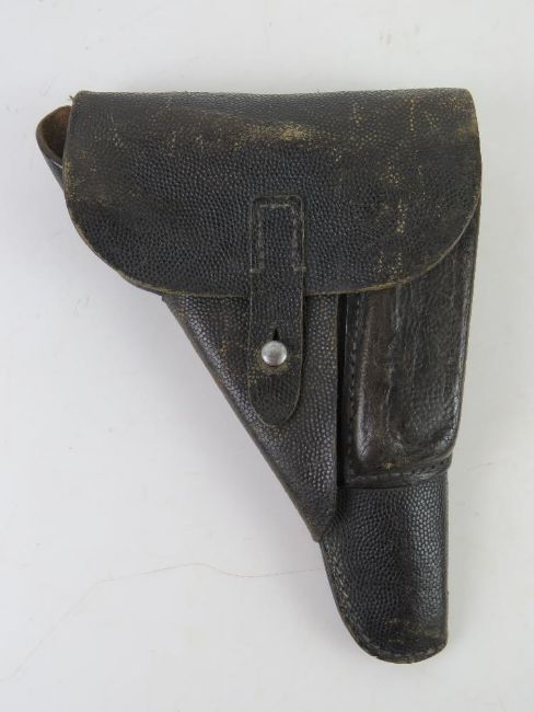 A WWII German P38 holster, makers code clg, dated 1944 with a Waffenamt stamp, having Luger tool pouch fitted to the inside of the lid.