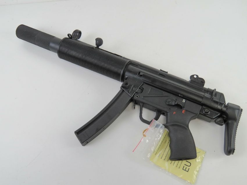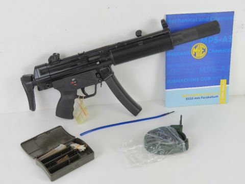 A deactivated HK MP5SDA3 9mm Suppressed Sub Machine Gun, MKE manufacture, with fully moving bolt (under spring pressure), moving trigger and safety, removable magazine. With Factory Carry Case, correct HK R3 sling, cleaning kit, and manual. With certificate.