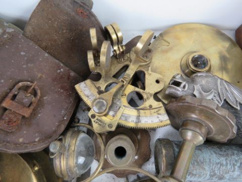A quantity of Naval instruments inc compasses, sextons, clocks (Stanley London 1862), telescopes, knifes, letter openers etc.