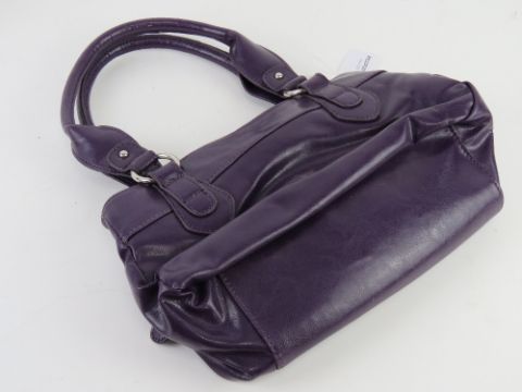 A purple leather handbag by Clarks, approx 30cm wide.
