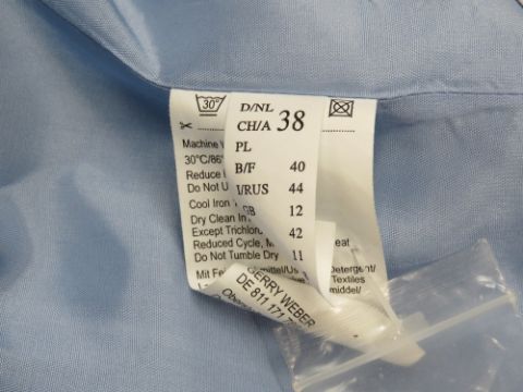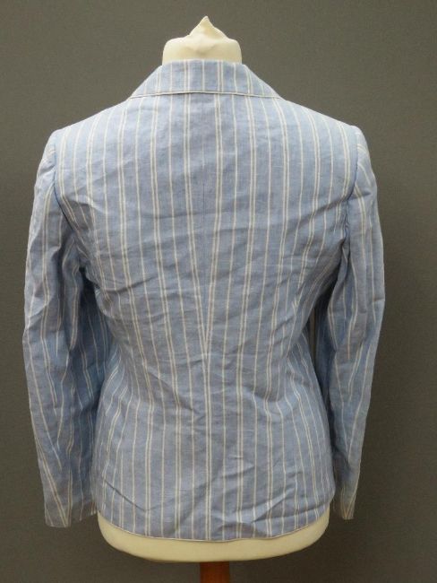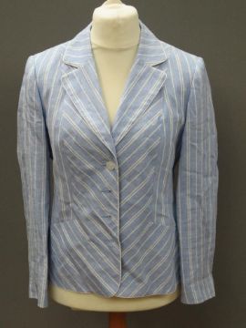 A Gerry Weber 100% linen pale blue and white pinstripe ladies jacket UK size 12.