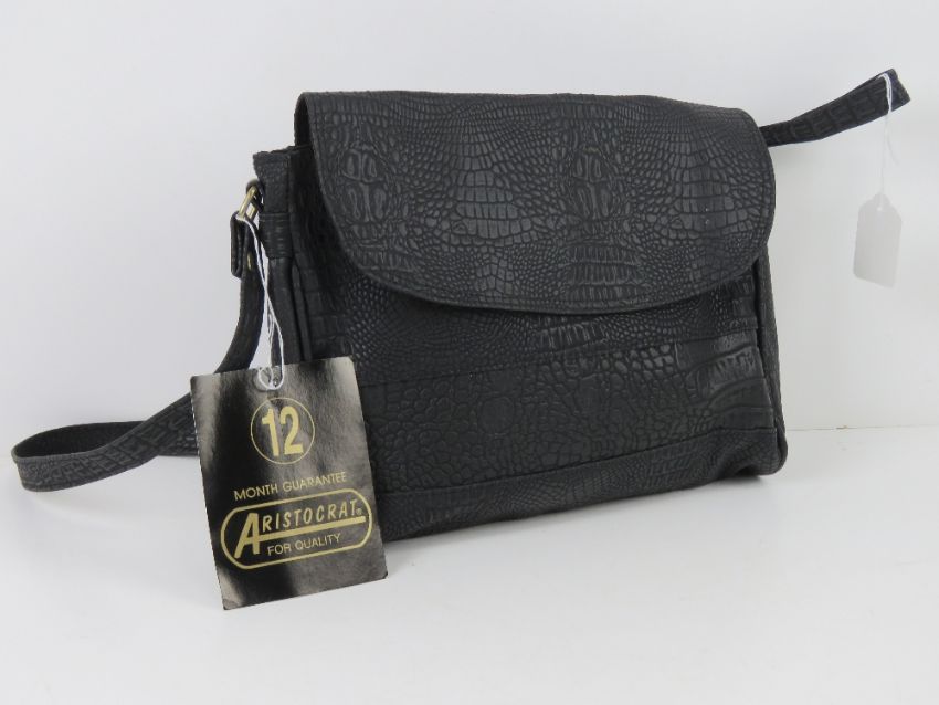 An 'as new' black faux reptile skin handbag 25 x 22cm.