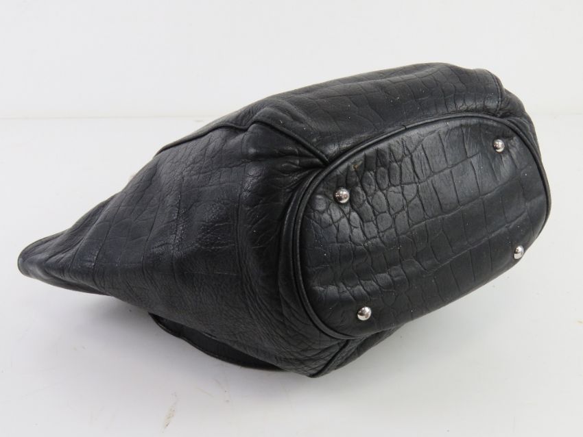 A black leather handbag made in France by Texier approx 19cm wide. Pen marks noted to lining.