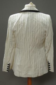 A ladies white trouser suit by Planet RRP £109, 21% linen, jacket UK size 8, trousers UK size 12 long length, marks noted to trouser hem.