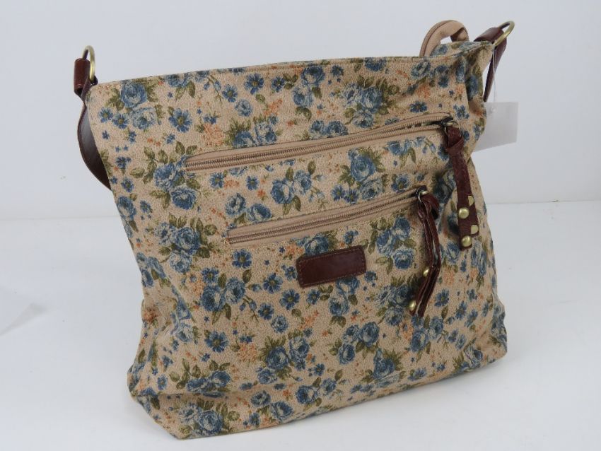 An 'as new' fabric tote bag having blue floral pattern 34 x 30cm.