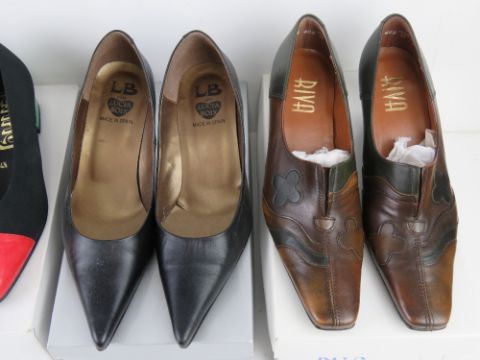 Four pairs of size 4.5 ladies shoes, three pairs being leather.